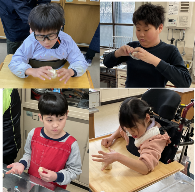 本日は、教室から調理室へ移動し、パン作りの活動を行いました。
