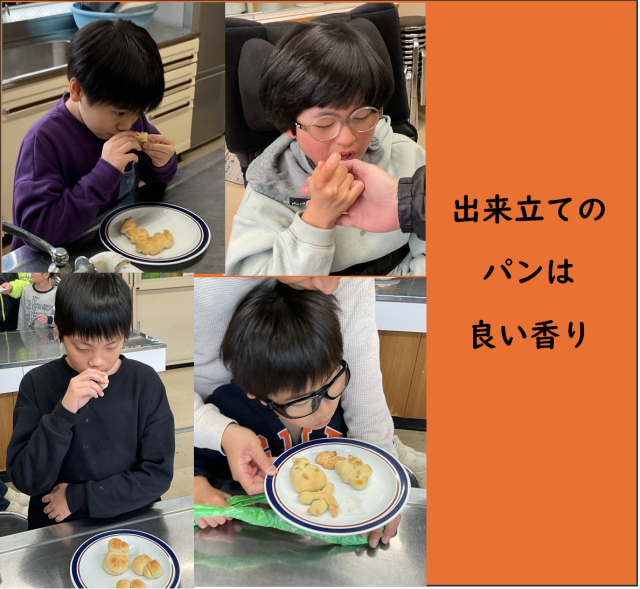 子どもたちは、さっそく出来上がったパンに顔を近づけて香りを楽しんだり、