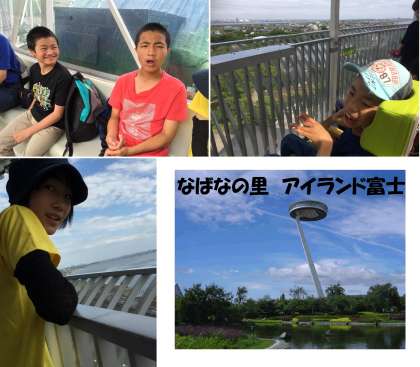 ※アイランド富士…ベンチに座わって乗車するだけで45m上空まで展望台が上がる乗り物です。展望台自体が360度回転するので,その場から揖斐長良川や名古屋方面のツインタワー,伊勢湾などの景色を楽しめます。