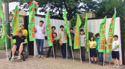 月曜日から始まった「あいさつ運動」も最終日を迎えました。校門では高等部の生徒会本部メンバーが毎朝のぼりを持って元気に挨拶してくれました。スクールバスに乗っているみんなも自主通学の生徒も,挨拶によって気持ちの良い一日のスタートをきることができました。