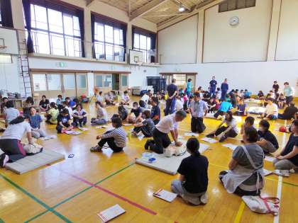 全教職員を対象に,救急救命講習会をしました。小グループに分かれ,AEDの使用を含む心肺蘇生のシミュレーションをしました。水泳学習が始まる前ということもあり,どのグループも真剣な態度でした。
