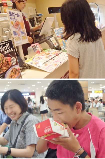 5グループはイオンモール京都に移動し,フードコートで昼食です。