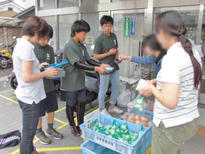 また,7月6日(木)の放課後には,校内の教職員向けに野菜販売を行いました。次々とお客さんが来るので手早い対応が必要で大変でしたが,一生懸命活動ができました。