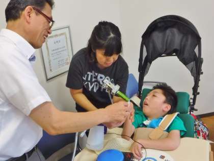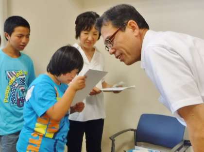 中学部のワークスタディで作った製品を地域の方にお届けする『地域にこにこ配達隊』を今年度も実施しています。7月7日(金)は,中学部の5名が学校からの坂道を下りたところにある京都信用金庫に配達に行きました。支店長さんに自己紹介をした後,中学部の代表として中学部ワークスタディ製品のセダム(観葉植物)をしっかり手渡すことができました。その後,支店長さんと修学旅行のこと,好きな学習,学習発表会で発表したい内容など,楽しくお話をしました。今後も製品展示の依頼と製品のメンテナンス等を通して,地域の方とのコミュニケーションを図っていきたいと思います。