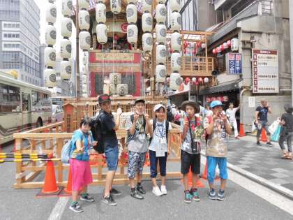 配ってからは,鉾を見学し,きらびやかな鉾を見上げて見入っていました。
