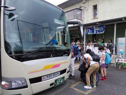 教室で出発式をした後,保護者の方々や小学部の下級生などに見送られて予定通り9:40にバスが出発しました。楽しく充実した旅行になりますように!!