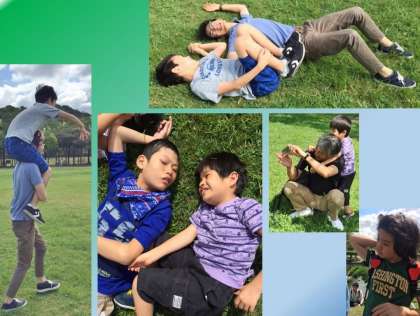 遊具では遊べなかったけれど,芝生で寝転がったり,木にぶら下がったり,走ったりと,思い思いに過ごしました。
