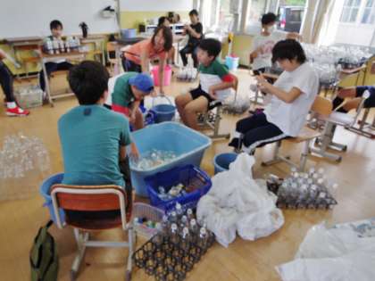 水曜日の午後,高等部の役割活動(リサイクル)ユニットがペットボトルのリサイクルのための様々な作業をしていました。洗浄,キャップはずし,ラベルはがし,圧縮など,集中して作業を進めていて,ピリッとした気持ちの良い空気が流れていました。