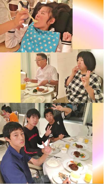 日中はグループ別の活動だったせいか,みんなと合流できてうれしい感じが伝わってきますね。