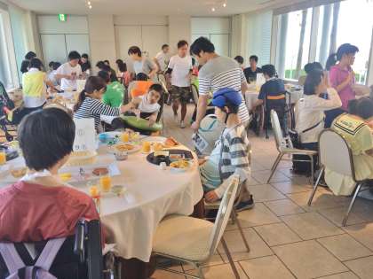 2日目の朝を迎えました。全員元気に過ごしています。たっぷり朝食をとって,今日の活動に備えます。