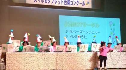 PTAのICTサークルが9/30(土)に開催された「第2回スマホ&タブレット合奏コンクール」に出場しました。携帯情報端末を使って素敵な音色を奏で,“息ぴったりで賞”をいただきました。下記リンクをクリックすると動画(YouTube)をご覧になれます。