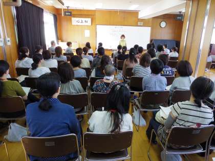 PTA教養委員会主催の第1回家庭教育講座が10/10(火)に開かれました。今回は楽育コンサルタントの小嶋十糸子氏をお迎えし,「勇気づけの子育て」の講演をしていただきました。和やかな雰囲気の中,引き込まれるお話で,気持ちを楽にして楽しく子育て・自分育てをしていこうという気持ちになりました。