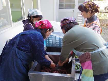 呉竹フェスタ秋で提供される焼イモ作りのために,PTAでサツマイモの準備を進めました。あたたかい日差しの中とはいえ,屋外でサツマイモを洗う作業は大変です。ありがとうございます!この後,洗ったサツマイモを包む作業は,高等部の生徒が担当します!
