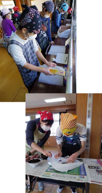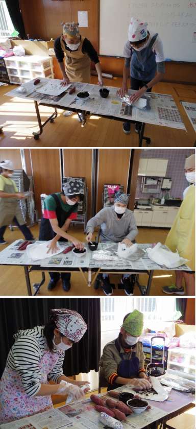 呉竹フェスタ秋の焼き芋作りの一部(アルミホイル包み)を,高等部のライフスタディで担いました。手順や環境設定をしっかり準備しておくと,生徒は手際よく次々と作業をしていきました。さすが高等部!!。あとは当日,おやじの会のメンバーが焼いてくださると食べられます。楽しみです!