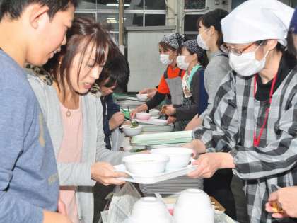 PTAやおやじの会の手作りによる美味しい豚汁でした。