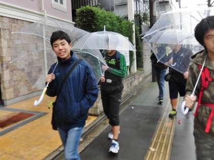 学校近くのセブンイレブンへ買物学習へ行きました。雨の中でも傘をさして交通ルールを守って歩けるように,雨天決行です!