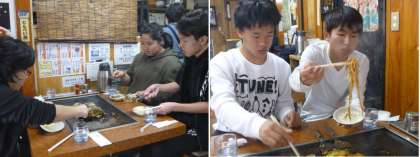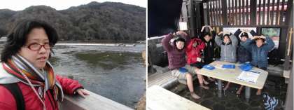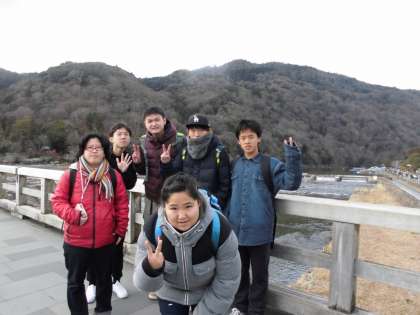 2/22(木)市バス・地下鉄を乗り継いで嵐山に行ってきました。観光客の多さにびっくり!でも頑張って渡月橋まで行き,記念撮影をしました。お昼ご飯はお好み焼き屋さんでとん平焼。ライフスタディの調理実習で自分たちも作ったとん平焼の経験と比べながら,「玉子のまき方がさすが!」「美味しい!」と大満足でした。駅構内にある足湯でゆっくりと温まってリラックスもしました。学習を生かした貴重な体験ができました。