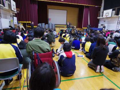 不審者が校内に侵入しようとしているという想定で避難訓練をしました。放送や先生の指示をよく聞いて行動し,避難先の体育館でも落ち着いた態度で過ごせました。あっては困ることですが,もしもの場合に備えたシュミレーションができたと思います。