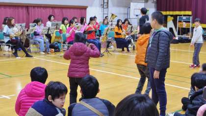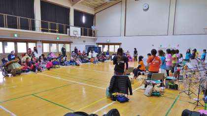 2/28(水),京都市呉竹文化センターの「アウトリーチ事業」を活用した吹奏楽コンサートを本校の体育館で実施しました。音楽サークル和音さんから30人程の団員の方が来てくださり,迫力ある演奏をしてくださいました。参加した小学部児童はノリノリ!音に合わせて視線を動かしたり,踊り出したりと楽しみました。寒い時期,気軽に屋外に出にくい児童もいるので,来校コンサートは大変ありがたかったです。ご協力いただいた皆様,ありがとうございました!,