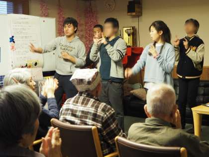 3/5(月),部活動の音楽部と美術部が本校の近くにある藤城の家に行き,出張音楽会をしました。利用者の皆様の前で歌を歌やダンスを披露したり,利用者の皆様に美術部が作った作品をプレゼントしたりしました。利用者の皆様も一緒になって歌ったり身体を動かしたりしてくださり,お互い,とても楽しい会になりました。
