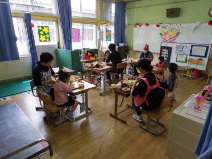 それぞれのペースで給食を食べていました。