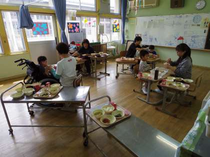 給食初日の様子(小学部)