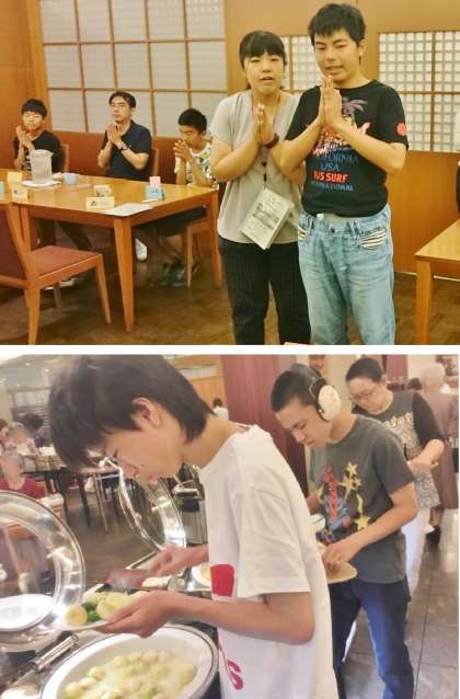 3日目の朝を迎えました。最終日も皆,元気に過ごしています。名古屋名物“ひつまぶし”を含む朝食をしっかりとって,さらに元気に過ごしたいと思います。朝食の準備で名札を配置する役割をしっかりと果たしていますね!