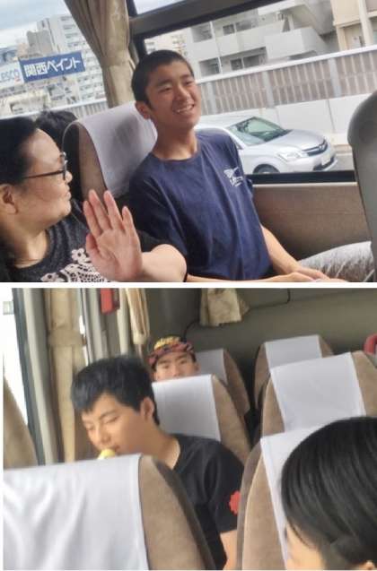 お世話になったホテルを出発して,本日の目的地に向かいます。早く出発したくて「はよ行こか」を連発する生徒もいて,やる気充分です!出発移動の観光バス車内ではカラオケ大会が繰り広げられています。
