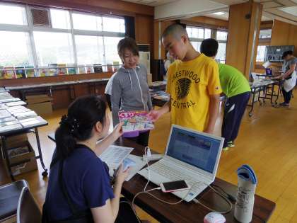 7/3(火)に多目的室にて選書会を行いました。これは,書店に持ってきていただいたま新しい本の中から,図書室においてほしい本を児童生徒が選ぶ会です。基本的には一人1冊選び,バーコードをチェックしてもらってリクエストを出します。会に来た児童生徒は,「この本も読みたいなぁ」と1冊には絞りきれない様子で多くの本に触れていました。