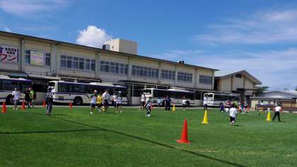 気象警報に伴い7/6(金)は休校でしたが,本日7/9(月)は快晴で,児童生徒も笑顔で登校しています。2限は早速,芝生でのランニング等,久しぶりの屋外での活動で汗を流す児童生徒の姿がありました。