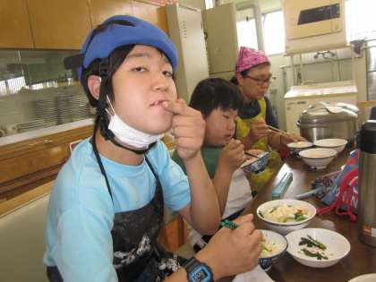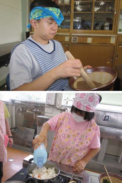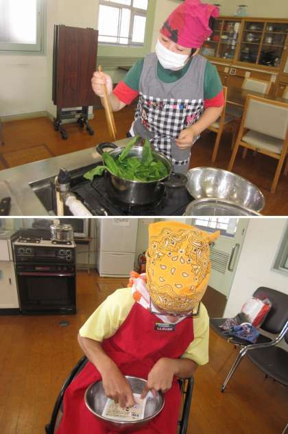 前回の調理実習では『温野菜』で様々な野菜を『茹でる・蒸す・ゆがく』という調理工程を経験しましたが,今回は,前回の調理実習で学んだ事を生かして『一汁一菜』に挑戦しました。野菜を切ったりゆでたりする手つきも随分と慣れてきました。みんなで美味しく頂くことが出来ました。栄養の勉強から調理実習と一連の流れで学んだ事が経験が少しでも各家庭の生活の場で生かされれば嬉しいです。