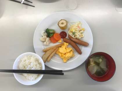 朝食をしっかり食べて,今日の活動のエネルギーを蓄えます!