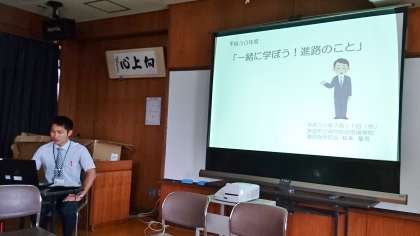 7/11日(水),本校多目的室においてPTA進路委員会主催による進路学習会「一緒に学ぼう!進路のこと」を開催しました。進路主事からのお話や卒業生保護者のお話など,盛りだくさんの内容でした。