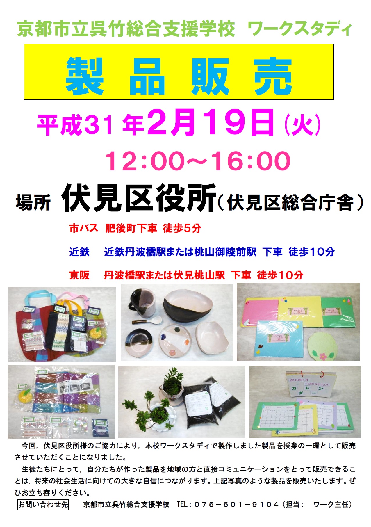 今回,伏見区役所様のご協力により,本校ワークスタディで製作した製品を授業の一環として販売させていただくことになりました。