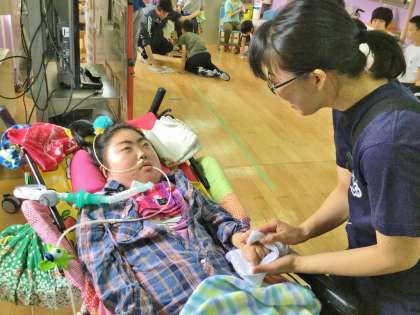 なぜ手を洗うのか,手洗いを疎かにするとどうなってしまうのか…,子どもたちは驚いたりうなずいたりしながら,実演を見たり話を聞いたりしていました。正しい手洗いの方法を映像で確認した後は,1人ずつ,手の平,手の甲,指の間,指先…と手洗いを実践しました。