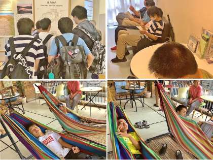 すべてのグループが日中の活動を終え,約束通りの夕方4時前には宿舎に到着しました。日中は雨の中でしたが,皆元気に過ごし,体調を崩している人もいません。宿の中の様々な設備を活用してほっこりしている生徒です。