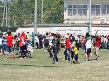体育の部最終種目「全員ダンス」の様子です。保護者の方にも近くに来ていただき,一緒に「パプリカ」のダンスを楽しみました。