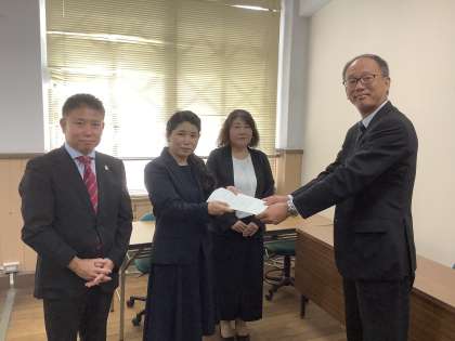 総合支援学校PTA連絡協議会会長の久保 江里子氏から,京都市教育委員会の春田 生涯学習部長へ,また障害保健福祉推進室の阪本 企画課長へ要望書が手渡され,限られた時間でしたが懇談が持たれました。日頃の総合支援学校へのご尽力や総P連事業へのご支援に対して謝意が伝えられるとともに,総合支援学校に通う児童生徒を取り巻く今日的課題の共有や,今年度の教育懇談会の進め方についても打合せをされました。