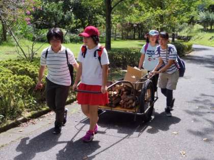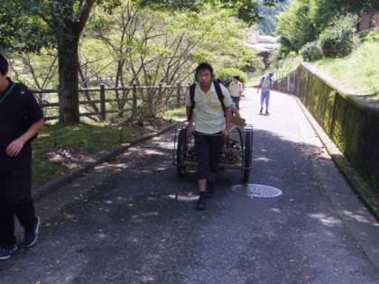 まずは,炊事棟までリアカーで荷物を運びます。