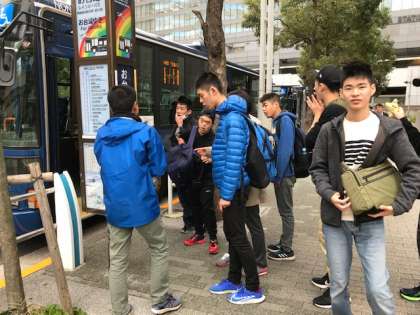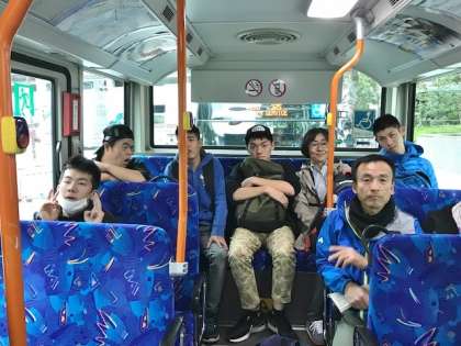 C班はバスで移動しています。