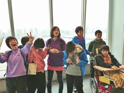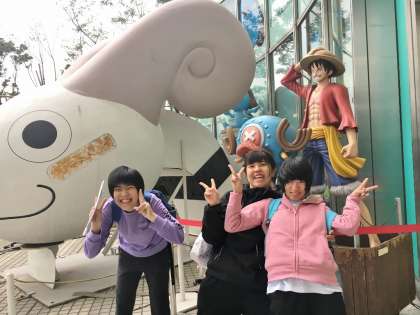 A班は水上バスでお台場に到着し,テレビ局の見学をしています。お土産も買えました。
