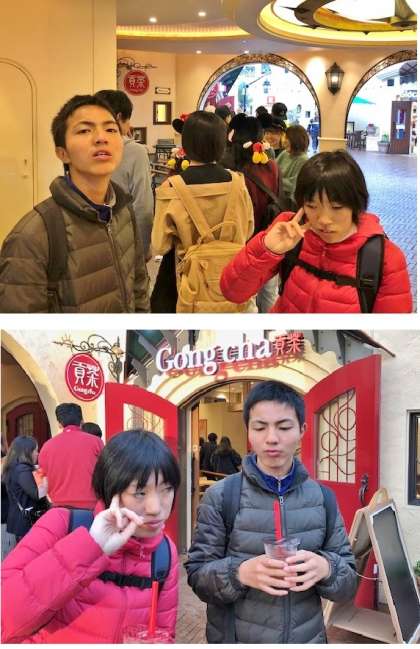 B班はホテル近くまで移動し,買い物や軽食・休憩をしました。人気のタピオカ店では行列に並ぶ経験もしました。