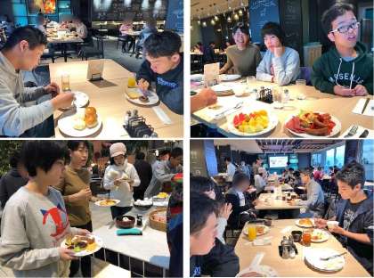 朝食もバイキングです。適量を食べて,本日の活動に備えます。
