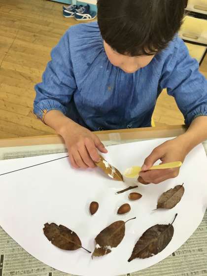 小学部6年生は桃山参道に行き,造形で使いたい落ち葉やどんぐり,枝を拾いました。たくさん落ちている場所を見つけると,「こっちにどんぐりがあるよー!」と教えてくれる友だちもいました。そして,拾ってきた材料の中から,自分が選んだものを使って飾りづくり。スプーンでボンドを丁寧に塗り,リースや帽子など素敵な飾りをつくっています。教室内に掲示しますので,ぜひご覧ください。