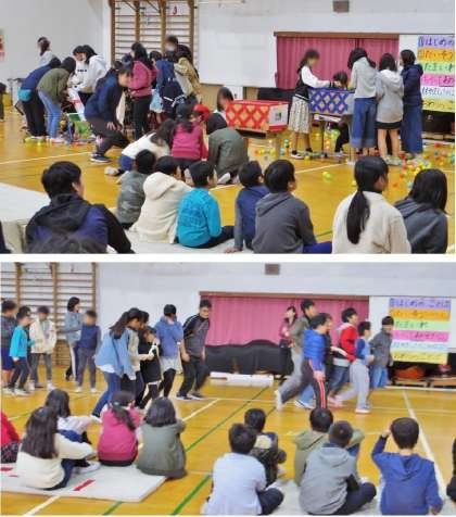 11/27(水)に桃山小学校6年生と本校4・5・6年生が,本校体育館にてミニ運動会をして交流を深めました。