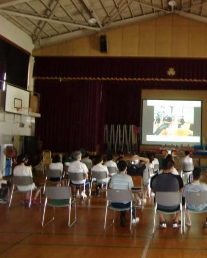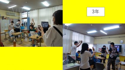 1年生は体育館内で距離を取り,2・3年生は各教室から参加しました。体育館からの中継や,iPadを使って各教室を紹介したり,事前に作成しておいた動画を各自で見たりと,新しい取組を行いました。