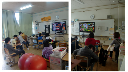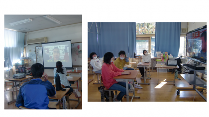 午後の部は中学部3年生から始まりました。映像に合わせて答えを考えたり,座りながら身体を動かして踊ったりしていました。本日の映像発表は高等部2年生で終了しました。明日も楽しみです。