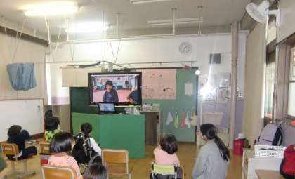 本日は小学部2年生から映像発表が始まりました。昨日に引き続き,各教室から映像鑑賞をしています。