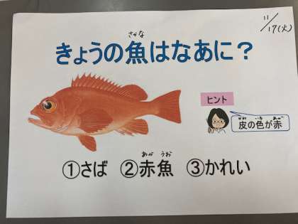 今日のクイズは,魚クイズ。こたえは・・・2:赤魚です。