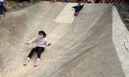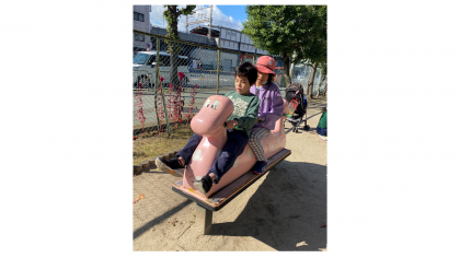 公園では友だちと譲り合って遊具で遊んだり,追いかけっこをしたり,思い切り体を動かして過ごしています。